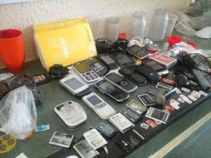 Parte de material apreendido na Cadeia Pública de Iguatu. Foto: Iguatu.net. Vinte e oito telefones celulares, cachaça …